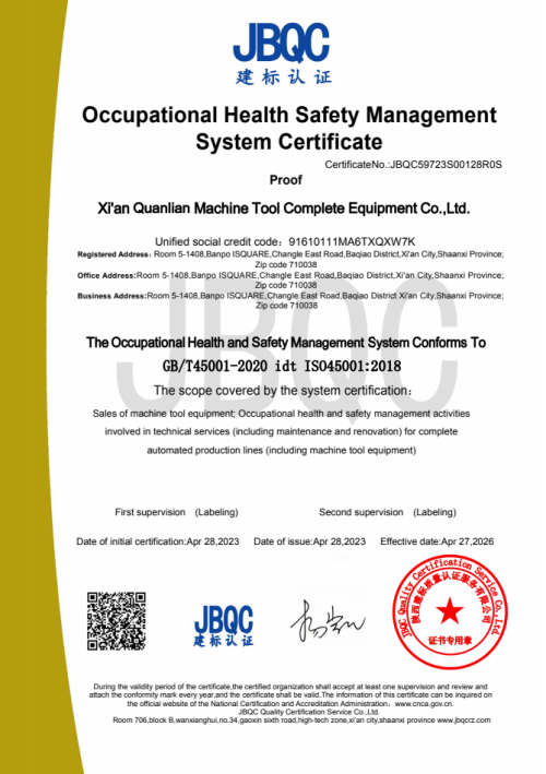 全聯成套全面通(tōng)過職業健康安全(quán)管理體系認證證(zhèng)書