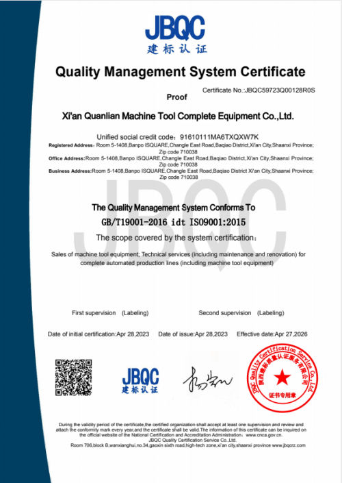 全聯成套全(quan)面通過質量(liàng)管理體系認(ren)證證書